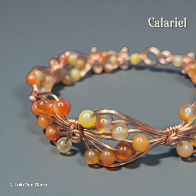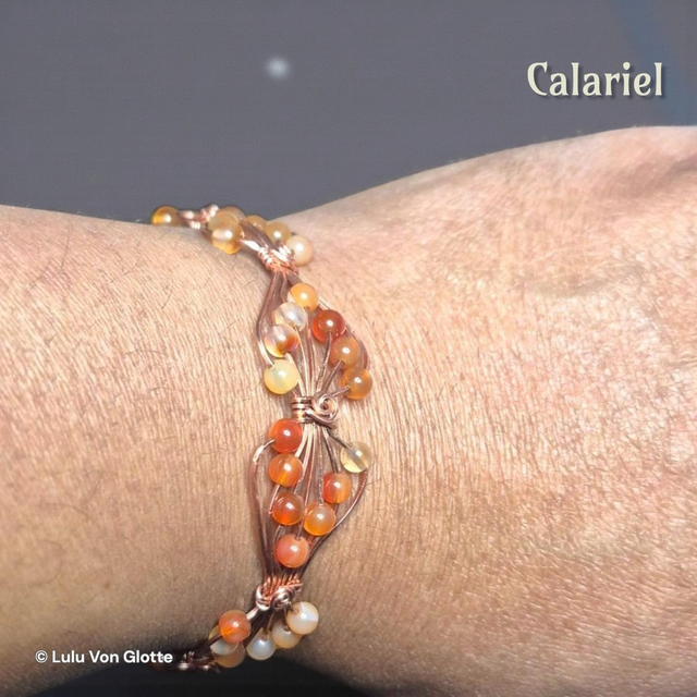 Façonné à la main avec soin, Calariel unit la chaleur du cuivre à l’éclat flamboyant de la cornaline naturelle.